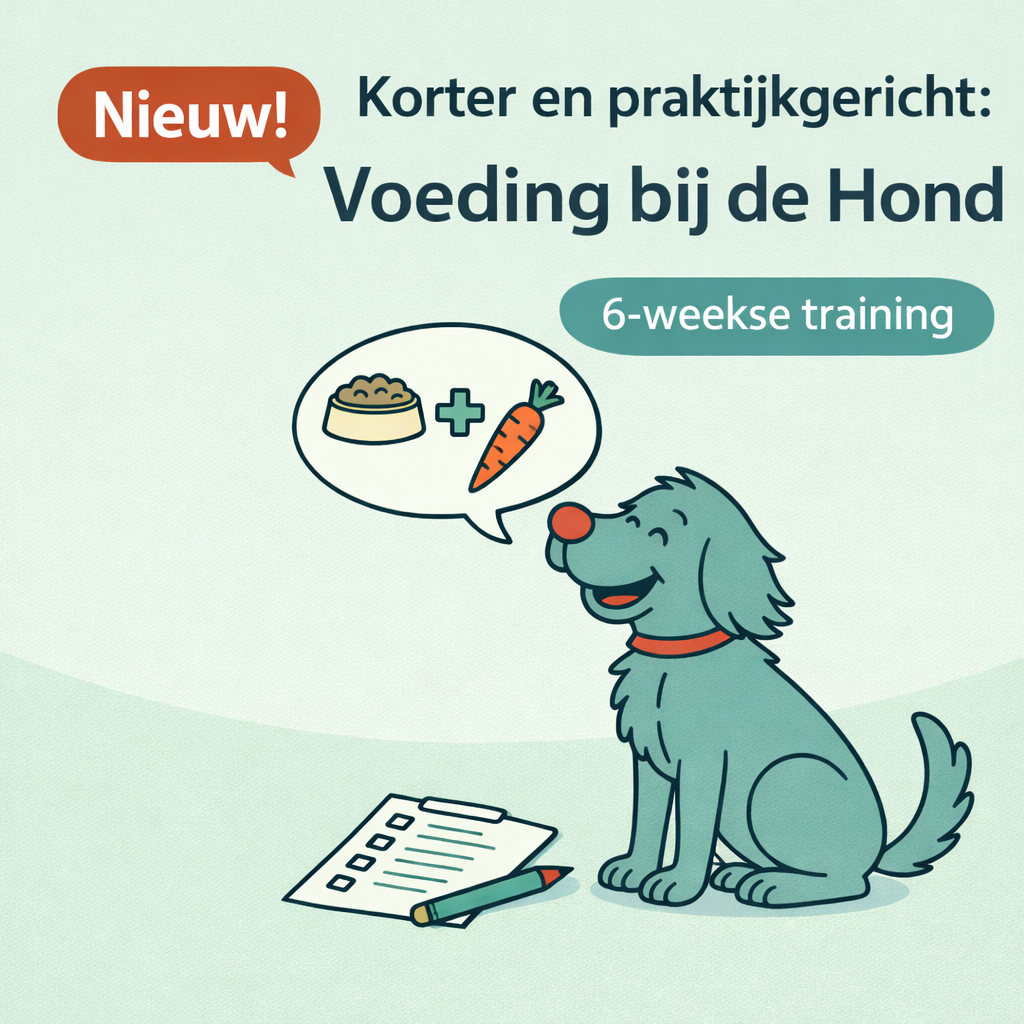 Tegelijkertijd zag ik een andere behoefte ontstaan. Veel professionals in de hondenbranche willen hun kennis over voeding verdiepen, maar hebben geen ambitie om een volledige praktijk te starten of consulten te geven. Zij zoeken geen uitgebreide jaaropleiding, maar wél inhoud, toepasbaarheid en praktische handvatten.